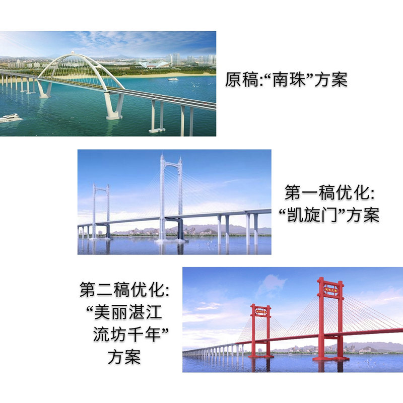 調(diào)順跨海大橋的設(shè)計(jì)方案優(yōu)化工作可謂一波三折,早在2014年,湛江市就向市民公開征集對主橋外觀方案的意見,最終體現(xiàn)湛江地域文化風(fēng)采和精髓的“南珠”方案從“湛江龍”、“花開福地”、“南珠”、“揚(yáng)帆”、“碧海纖云”、“湛海飛虹”等六個設(shè)計(jì)方案中脫穎而出。2017年初,國內(nèi)建橋勁旅中鐵大橋局中標(biāo)調(diào)順跨海大橋PPP項(xiàng)目,在同年7月份的PPP簽約大會后,湛江市醞釀對主橋方案進(jìn)行優(yōu)化調(diào)整,并責(zé)成湛江市交投集團(tuán)盡快拿出新方案,以期順暢銜接施工建設(shè),避免造成工期延誤。但是優(yōu)化方案幾經(jīng)調(diào)整,三易其稿,對項(xiàng)目融資和施工建設(shè)均造成了不同程度的影響。一直到今年6月20日何鏡堂大師團(tuán)隊(duì)“風(fēng)調(diào)雨順,湛江紅門”為主題的深化方案新鮮出爐,才使得為期近一年的主橋優(yōu)化設(shè)計(jì)方案最終塵埃落定。