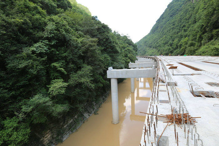 綿延不絕的秦巴山脈深處,西鎮(zhèn)高速公路建設(shè)正如火如荼。如果不到現(xiàn)場(chǎng),是難以想象該項(xiàng)目的建設(shè)難度。西鄉(xiāng)縣古城鎮(zhèn)是西鎮(zhèn)高速的起點(diǎn)一標(biāo)段,路線往南順著涇洋河上游就一頭扎進(jìn)了秦巴山,兩邊是數(shù)百米高的高山,涇洋河順著山勢(shì)沿河而下,河床寬的地方只有幾十米,窄的地方僅有十多米。有30多公里為無(wú)人區(qū),深山峽谷中除了河流沒(méi)有路。為了修建西鎮(zhèn)高速公路,業(yè)主提前兩年順河修建了幾十公里的便道,但其等級(jí)很低會(huì)車?yán)щy,材料運(yùn)輸極不方便。西鎮(zhèn)高速地處秦巴山腹地,兩山夾一河,兩邊是綿延不絕的高山,沒(méi)有一塊平地,且河道很窄,由于地勢(shì)獨(dú)特,西鎮(zhèn)高速除隧道外,整條線路全部設(shè)計(jì)在涇洋河中。