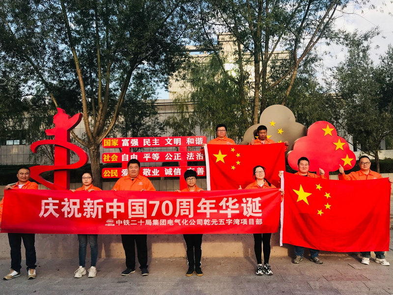 本站府谷訊(記者張明)9月23日,中鐵二十局集團電氣化公司乾元五字灣鐵路項目黨支部為慶祝新中國70華誕,組織開展了“祝福祖國,我與國旗同框”主題活動,引導和激勵大家與時代同發(fā)展、與祖國共奮進,立足崗位開拓創(chuàng)新、干事創(chuàng)業(yè)。項目黨員、團員、職工代表和農民工帶著燦爛的笑臉同鮮艷的五星紅旗合影,傳遞出了堅定不移的愛國熱情,映照出了對祖國繁榮昌盛的真摯祝福。