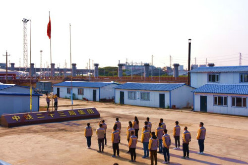 朝霞相映,紅旗飄飄。這一天,東極佳木斯的太陽格外的鮮艷,哈佳鐵路項目部全體員工迎著朝霞前往二工區(qū),在光輝的照射下舉行隆重的升旗儀式。威武雄壯的國歌聲響徹每一個角落,全體員工激情澎湃,在注目禮下,五星紅旗冉冉升起。參加升旗儀式的員工紛紛表示:“在70周年親眼看到國旗升起,心中充滿了自豪與驕傲,共同祝愿祖國繁榮富強,猶如紅旗迎風飄揚。”