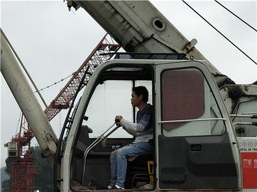 離地?cái)?shù)十米的T梁上,老馬正對(duì)吊車(chē)進(jìn)行檢查。他一邊檢查一邊對(duì)我說(shuō):“在開(kāi)始工作前不檢查不行,這不但是對(duì)自己負(fù)責(zé),也是對(duì)別個(gè)(其他人)負(fù)責(zé)。有些吊車(chē)司機(jī)會(huì)跳過(guò)這一環(huán)節(jié)直接開(kāi)始吊運(yùn),萬(wàn)一出了問(wèn)題就追悔莫及了。”他繞著吊車(chē)走圈子,逐一檢查支腿,又繞回車(chē)前對(duì)吊鉤、鋼絲繩等部位進(jìn)行了認(rèn)真檢查。之后,他又目測(cè)吊車(chē)與被吊物的距離并和T梁上的管理員老郭交流起今天的工作任務(wù),還時(shí)不時(shí)就具體問(wèn)題提出疑惑和建議。把每個(gè)細(xì)節(jié)都確認(rèn)后,老馬才坐進(jìn)駕駛室。他嫻熟地運(yùn)用著操縱桿,目光專(zhuān)注、神色認(rèn)真。我也不再搭話(huà),走遠(yuǎn)避開(kāi)。吊車(chē)緩緩運(yùn)轉(zhuǎn),吊臂伸長(zhǎng),吊鉤下放,老馬的工作開(kāi)始了。