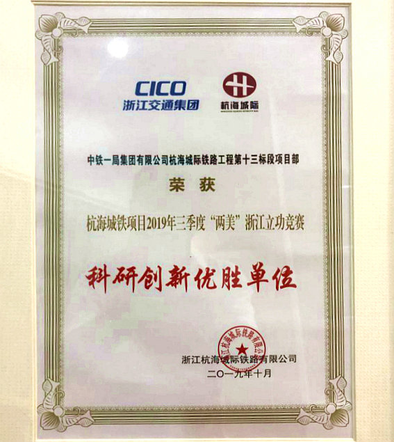(海寧訊)10月22日,從浙江杭海城際鐵路有限公司2019年三季度“兩美”浙江重點工程立功競賽總結表彰會上獲悉,中鐵一局建安公司杭海城際項目在此次立功競賽中獲得多項榮譽。