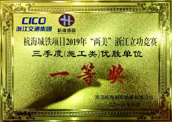 獲2019年“兩美”浙江立功競賽三季度(施工類)一等獎
