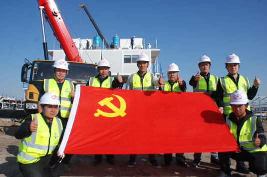“親愛的黨、敬愛的黨,因為有您,我們變得越來越強大;因為有您,我們越來越幸福。感謝您,偉大的黨。”項目部辦公室主任黨員張利國在黨旗下表達了他對黨的感恩之情。