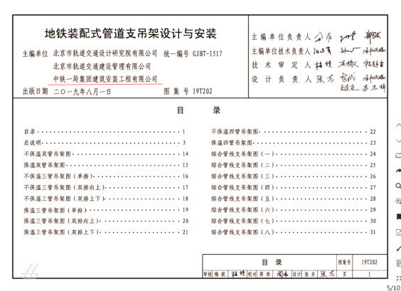 該標(biāo)準(zhǔn)圖集是由中國建筑標(biāo)準(zhǔn)設(shè)計(jì)研究院組織,北京市軌道交通設(shè)計(jì)研究總院有限公司、北京市軌道交通建設(shè)管理有限公司、中鐵一局建安公司三家單位聯(lián)合主編,對新建、擴(kuò)建和改建的地鐵工程裝配式管道支吊架的設(shè)計(jì)與施工安裝有較強(qiáng)的專業(yè)指導(dǎo)作用。