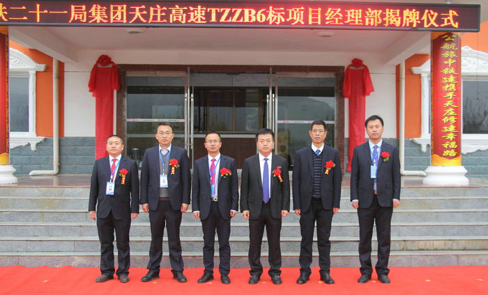 揭牌儀式上,中鐵二十一局集團(tuán)天莊高速TZZB6標(biāo)項目總工趙強(qiáng)向大家介紹了項目工程概況。項目常務(wù)副經(jīng)理柳吉煥宣讀項目成立文件,并代表項目部鄭重承諾:在今后的項目建設(shè)中將始終秉承“逢山鑿路,遇水架橋,鐵道兵前無險阻;風(fēng)餐露宿,沐雨櫛風(fēng),鐵道兵前無困難”的鐵道兵精神,按照“團(tuán)隊協(xié)作、永爭第一”的目標(biāo)要求,以及精益求精的工匠精神,抓征地拆遷,確保標(biāo)段率先開工;抓安全生產(chǎn),確保平安工地建設(shè);抓工程質(zhì)量,確保創(chuàng)建品質(zhì)工程;抓環(huán)水保管理,確保綠色生態(tài)文明;抓工期管理,確保項目按期完工;抓基層黨建和反腐倡廉,確工程優(yōu)質(zhì)隊伍優(yōu)秀干部優(yōu)良。堅決按照“高起點準(zhǔn)備、高效率施工、高標(biāo)準(zhǔn)建成”的要求履行好駐地央企社會責(zé)任,建設(shè)好家門口工程。