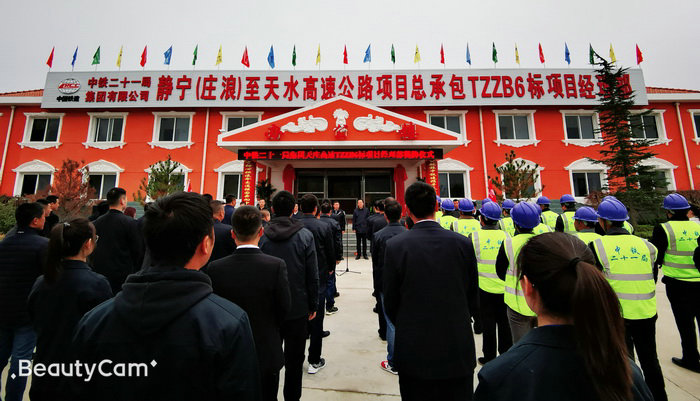 隨后,在煙花禮炮聲及現(xiàn)場貴賓、嘉賓及項目部全體職工、工區(qū)代表等壹百多人的見證下,清水縣縣委副書記、縣長馬越垠、公航旅天莊公司總經(jīng)理辛延甫、清水縣縣委常委、副縣長秦永斌、中鐵二十一局三公司副總經(jīng)理魏惠民共同為中鐵二十一局集團(tuán)天莊高速總包(TZZB)6標(biāo)項目部揭牌。揭牌儀式結(jié)束后,項目部組織出席揭牌儀式的各位貴賓、嘉賓參觀了項目部駐地,并組織觀看了企業(yè)宣傳片。