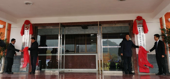 圖為各級領(lǐng)導(dǎo)為項目部揭牌
