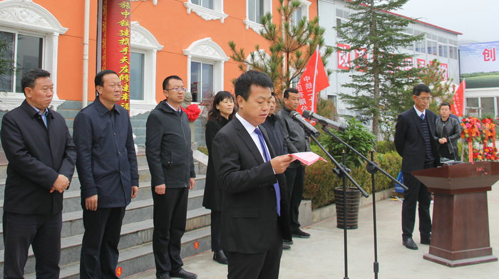 揭牌儀式在項目部駐地辦公樓前舉行。項目部職工、各工區(qū)代表排著的整齊列隊,精神抖擻迎接各級領(lǐng)檢閱。