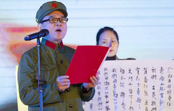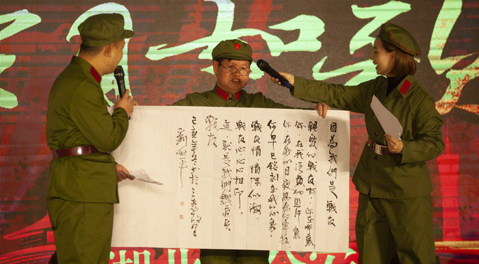 首先由來(lái)自西安的學(xué)兵張群芳、葉維娜、徐慧、任萱、王淑玲、李爽6人表演開場(chǎng)舞《最美是你》,一襲紅色的長(zhǎng)裙,靈活的身段、輕盈的舞姿贏得了熱烈的掌聲,將文娛演出推向了第一個(gè)高潮。隨后,由原鐵道兵第十師48團(tuán)汽車二連指導(dǎo)員、團(tuán)湖北省委副書記、湖北省青年聯(lián)合會(huì)主席楊澤林會(huì)長(zhǎng)致辭、汪正茂副會(huì)長(zhǎng)講話、鐵道兵二師戰(zhàn)友聯(lián)誼會(huì)秘書長(zhǎng)張集臣致賀詞、原50團(tuán)機(jī)關(guān)電影組、湖南常德鐵道兵十師戰(zhàn)友聯(lián)誼會(huì)會(huì)長(zhǎng)勞新國(guó)講話、荊州市沙市鐵道兵第十師48團(tuán)戰(zhàn)友聯(lián)誼會(huì)副會(huì)長(zhǎng)兼秘書長(zhǎng)劉昌林講話。接下來(lái)由慶典公司人員王軍演唱《當(dāng)兵的人》;原48團(tuán)汽車連老戰(zhàn)友肖文斌詩(shī)朗誦《我們是鐵道兵》;原48團(tuán)10連文書劉世平戰(zhàn)友同時(shí)現(xiàn)場(chǎng)表演書法;西安學(xué)兵李爽、王淑玲女聲演唱《大紅棗兒甜又香》;原48團(tuán)宣傳隊(duì)?wèi)?zhàn)友沈方茂板胡獨(dú)奏《春來(lái)早》;女聲獨(dú)唱《節(jié)日歡歌》,表演者王淑玲;男女聲二重唱《為了誰(shuí)》,表演者原48團(tuán)宣傳干事張運(yùn)茂、西安女學(xué)兵王淑玲。
