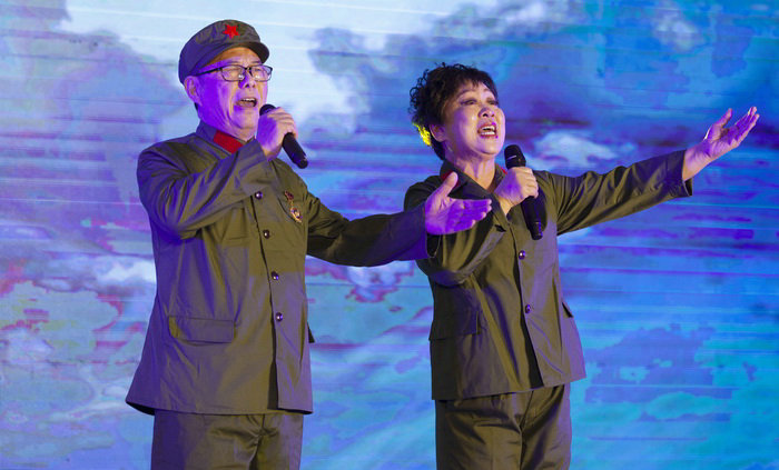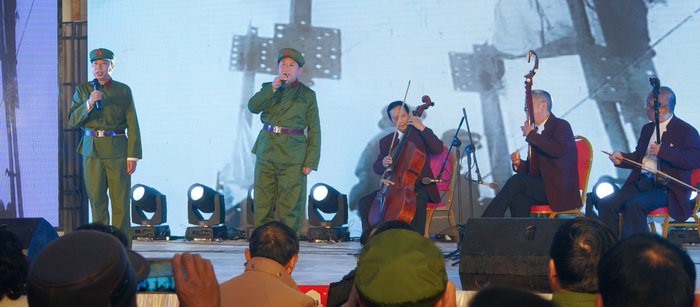 為了活躍氣氛,文娛演出節(jié)目穿插進(jìn)行。副會(huì)長(zhǎng)、原鐵道兵第十師48團(tuán)副參謀長(zhǎng)、原中鐵二十一局三公司副處長(zhǎng)楊德榮宣讀由1982年入伍的甘肅平?jīng)黾畱?zhàn)友、現(xiàn)中鐵二十一局三公司干部胡志超等戰(zhàn)友發(fā)來(lái)的賀電賀信;華銘悅大酒店員工表演舞蹈《美美噠》,為聯(lián)誼會(huì)助興。原鐵道兵第十師48團(tuán)四川樂(lè)山市犍為籍戰(zhàn)友、現(xiàn)中國(guó)鐵道建筑報(bào)記者尹登明、原鐵道兵第十師48團(tuán)宣傳隊(duì)老戰(zhàn)友王哲平演唱《駿馬奔馳保邊疆》;西安女學(xué)兵任萱、徐慧表演陜西快板《四大嫂贊鐵兵》;原鐵道兵第十師48團(tuán)宣傳隊(duì)劉大勇、沈方茂、任祖華表演民樂(lè)合奏《紅歌聯(lián)奏》;原鐵道兵第十師48團(tuán)宣傳股干事任祖榮朗誦毛主席詩(shī)詞《沁園春·雪》;西安學(xué)兵任萱、張群芳、葉維娜、徐慧、王淑玲、李爽等表演舞蹈《洗衣歌》;公安籍戰(zhàn)友、執(zhí)行會(huì)長(zhǎng)賀正海作總結(jié)講話。華銘悅大酒店朱遠(yuǎn)松表演獨(dú)唱《再見了大別山》;王淑玲、李爽二重唱《孤獨(dú)的牧羊人》;最后是大合唱《我和我的祖國(guó)》,由任萱、張群芳、葉維娜、徐慧、王淑玲、李爽領(lǐng)唱,全體演員謝幕。