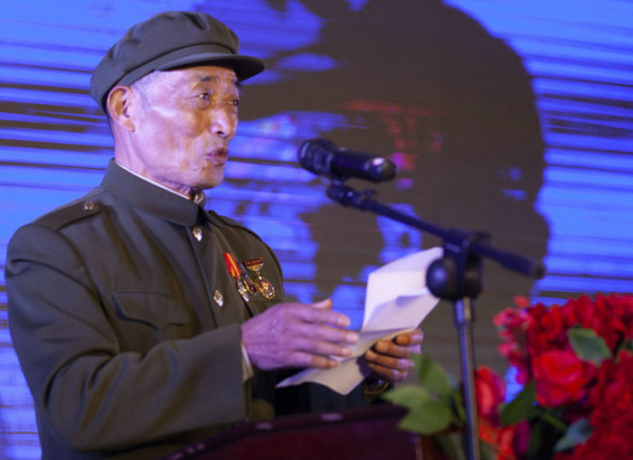 按照會(huì)議議程,從8點(diǎn)到10點(diǎn),副會(huì)長(zhǎng)楊德榮指揮大家分批合影留念。合影結(jié)束后,《鐵道兵志在四方》的樂(lè)曲在會(huì)場(chǎng)響起,老兵們情不自禁地放聲高歌,慶典活動(dòng)正式開始。