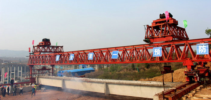 圖為首片梁平穩(wěn)地落到橋臺和墩身上 為確保預(yù)制箱梁順利架設(shè),項(xiàng)目部聯(lián)合總監(jiān)辦、駐地辦及互通區(qū)合作單位精心籌備、優(yōu)化資源,制定了專項(xiàng)施工方案及應(yīng)急預(yù)案,扎實(shí)開展安全技術(shù)交底。從現(xiàn)場架梁準(zhǔn)備到人員培訓(xùn)、設(shè)備使用、安全防護(hù)的詳細(xì)部署,再到梁場、運(yùn)輸方、吊裝方等各方充分協(xié)調(diào),每一步都充分體現(xiàn)了項(xiàng)目部全體員工高度的責(zé)任心和強(qiáng)勁的執(zhí)行力。在架梁過程中,各方人員認(rèn)真落實(shí)施工方案,嚴(yán)格遵守操作規(guī)程,不斷加強(qiáng)安全把控,對架橋機(jī)的運(yùn)行和鋼絲繩的質(zhì)量方面進(jìn)行了嚴(yán)格的檢查,確保了箱梁就位準(zhǔn)確穩(wěn)固。