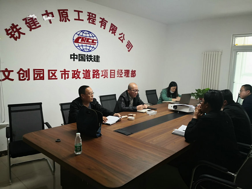 4月14日下午,公司總經(jīng)理、黨委副書記門發(fā)忠一行到鄭州文創(chuàng)園區(qū)市政道路項(xiàng)目檢查指導(dǎo)工作,項(xiàng)目經(jīng)理就項(xiàng)目概況、施工進(jìn)度、成本控制、安全質(zhì)量等相關(guān)情況進(jìn)行了一一匯報(bào),項(xiàng)目總工就項(xiàng)目施工現(xiàn)場工作做了專項(xiàng)匯報(bào)。
