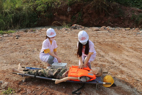 演練開始后,安全總監(jiān)首先講解洪水災(zāi)情的危害、發(fā)生洪水后的救人以及自救措施,著重講解心肺復(fù)蘇的施救步驟和注意事項(xiàng)。隨后全程監(jiān)督把控演練過(guò)程,向演練隊(duì)員明確要求安全注意事項(xiàng)。整個(gè)演習(xí)過(guò)程中,各小組各司其職,井然有序,為遇到實(shí)際問(wèn)題時(shí)提供了寶貴的經(jīng)驗(yàn)。