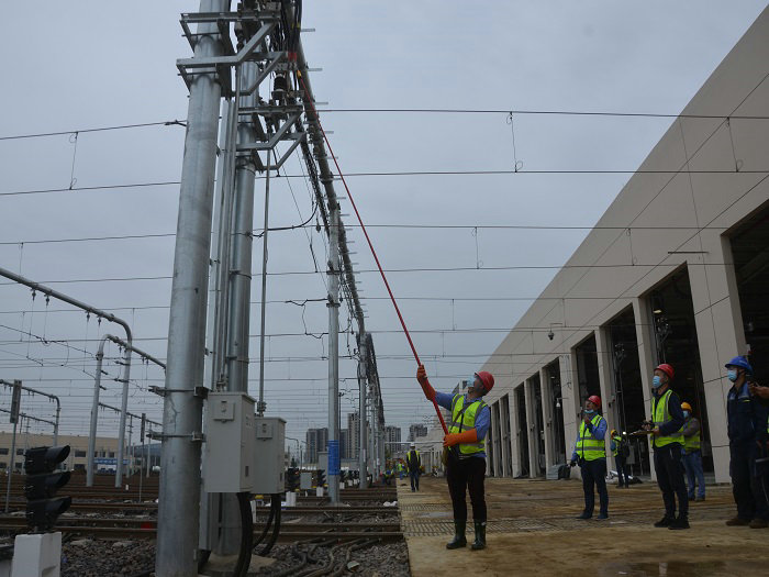 元華車輛段作為疫情期間首個(gè)復(fù)工工點(diǎn),項(xiàng)目部堅(jiān)持科學(xué)防疫,有序推進(jìn)復(fù)工復(fù)產(chǎn),于2月29日啟動(dòng)了“大干120天”勞動(dòng)競(jìng)賽活動(dòng),以目標(biāo)為引領(lǐng),堅(jiān)持把“控安全、抓質(zhì)量、保節(jié)點(diǎn)”放在首位,砥礪奮進(jìn)、攻堅(jiān)克難,積極拓展施工作業(yè)面、優(yōu)化施工組織設(shè)計(jì)、解決施工技術(shù)難題,全面掀起了項(xiàng)目部施工大干熱潮,確保了3月20日比原計(jì)劃提前5天實(shí)現(xiàn)牽引降壓混合所受電;4月18日完成了場(chǎng)段內(nèi)接觸網(wǎng)架設(shè)及調(diào)整工作;4月20日完成了限界檢測(cè)及接觸網(wǎng)冷滑試驗(yàn),為此次接觸網(wǎng)送電節(jié)點(diǎn)提供了有力保障。