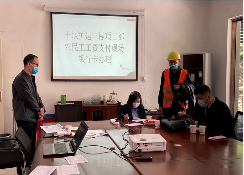 工資支付事關(guān)農(nóng)民工切身利益,為確保項目農(nóng)民工權(quán)益不受侵害,根治欠薪問題,十堰大川項目部在與協(xié)作隊伍進(jìn)行充分溝通后,開設(shè)了農(nóng)民工工資專用賬戶,并邀請湖北商業(yè)銀行上門為農(nóng)民工辦理專屬工資卡。