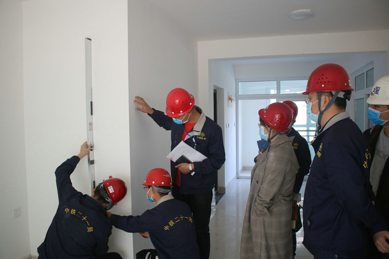 經(jīng)過(guò)質(zhì)監(jiān)站、業(yè)主代表、設(shè)計(jì)院、監(jiān)理及項(xiàng)目技術(shù)人員組成的聯(lián)合驗(yàn)收小組對(duì)戶內(nèi)開(kāi)間、進(jìn)深、凈空、垂直平整度和給排水、暖通等方面進(jìn)行全面驗(yàn)收,公司中牟項(xiàng)目第一批13棟樓得到了各驗(yàn)收單位的一致好評(píng),圓滿完成了分戶驗(yàn)收工作。