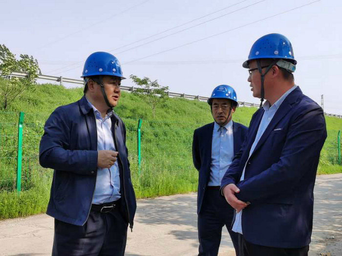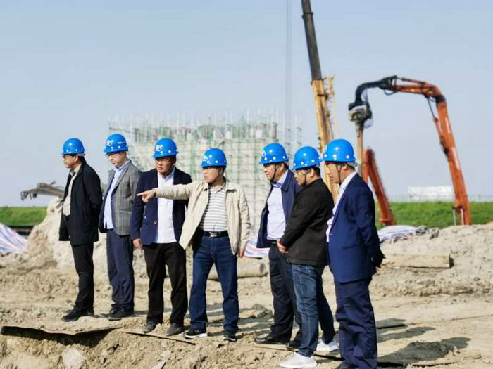 圖為副總經(jīng)理張小衛(wèi)(左)聽取副經(jīng)理張正興介紹施工情況