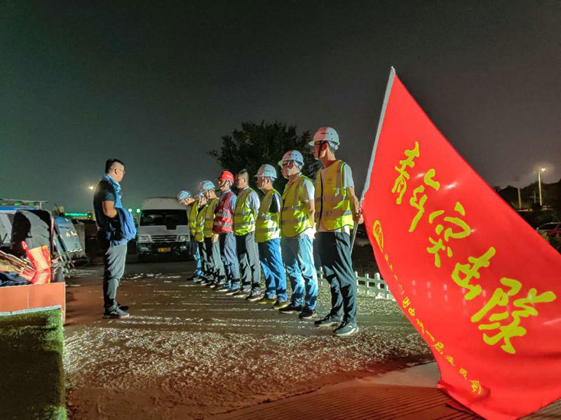 晚上,在國旗臺前集結完畢青年突擊隊,舉行了授旗儀式,青年突擊隊的成立,在施工現(xiàn)場掀起比、學、趕、幫、超的熱潮,極大地激發(fā)了員工們的工作熱情和主人翁意識,有利于推動杭紹臺項目施工生產(chǎn)。