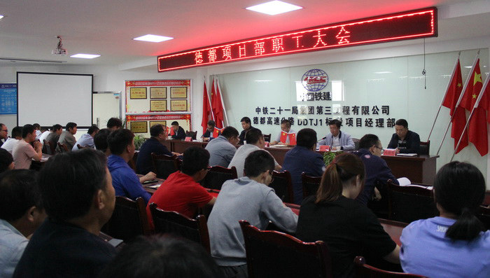 本網(wǎng)四川德陽5月3日訊(通訊員 李加佳 雷德宇) 近日,中鐵二十一局三公司黨委副書記、紀委書記郝禮;人力資源部部、黨委干部部部長金勇;工會辦公室主任范軼群一行到德都項目部檢查指導工作。郝書記一行查看了項目施工現(xiàn)場情況,與業(yè)主公司相關領導進行深入交流,仔細查看黨政工作開展情況、并與職工親切交談,了解職工近期思想動態(tài)和工作生活情況,開展職工民主測評,召開職工大會。