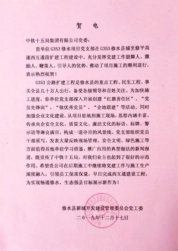 去年2月份以來,該項(xiàng)目黨支部制定了創(chuàng)建四好班子實(shí)施意見、黨支部工作安排、新聞報(bào)道獎(jiǎng)勵(lì)實(shí)施辦法、黨風(fēng)廉政反腐敗工作計(jì)劃等多項(xiàng)制度、措施,并注重抓落實(shí),取得了顯著成績(jī)。2019年,榮獲修水縣新城開發(fā)建設(shè)管委會(huì)黨工委先進(jìn)黨支部稱號(hào),項(xiàng)目書記呂奎元被評(píng)為優(yōu)秀黨務(wù)工作者;項(xiàng)目部被公司評(píng)為企業(yè)文化建設(shè)優(yōu)秀單位,新聞報(bào)道工作在公司幾十個(gè)單位中名列前茅,呂奎元獲公司新聞報(bào)道先進(jìn)個(gè)人第一。
