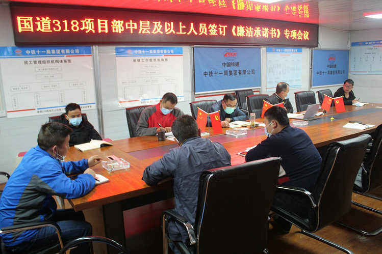 西藏芒康訊: 為了進(jìn)一步提高國(guó)道318項(xiàng)目管理人員廉潔自律意識(shí),規(guī)范從業(yè)行為,項(xiàng)目部黨工委把簽訂廉潔從業(yè)承諾書作為貫徹落實(shí)黨風(fēng)廉政建設(shè)責(zé)任制,落實(shí)《國(guó)有企業(yè)領(lǐng)導(dǎo)人員廉潔從業(yè)若干規(guī)定》的一項(xiàng)重要舉措,要求所有中層以上管理人員都要簽訂廉潔從業(yè)承諾書。在5月11日召開的2020年黨風(fēng)建設(shè)和反腐倡廉宣傳教育月活動(dòng)動(dòng)員會(huì)上,項(xiàng)目部5名領(lǐng)導(dǎo)班子成員和9名中層管理人員都簽訂了《廉潔承諾書》和《崗位廉潔風(fēng)險(xiǎn)預(yù)警防控表》。