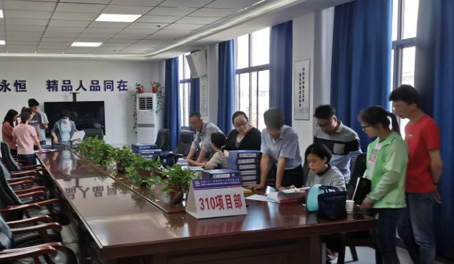 圖為內(nèi)業(yè)檢查組查閱相關(guān)資料
