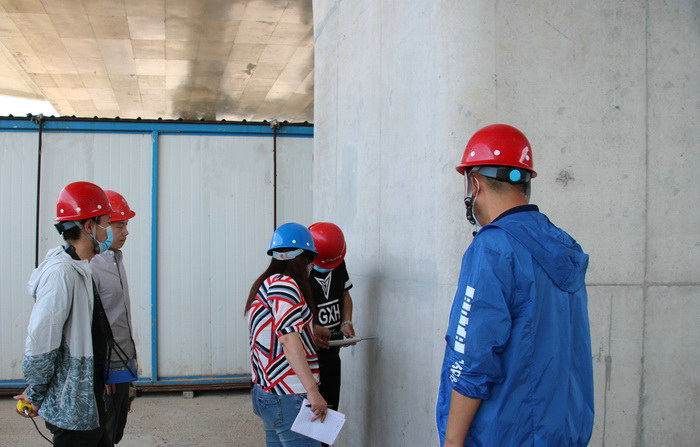 此次檢查分內(nèi)業(yè)組和外業(yè)組。內(nèi)業(yè)組對(duì)項(xiàng)目人員履約、質(zhì)量、技術(shù)、安全體系資料等方面資料進(jìn)行逐一檢查,對(duì)項(xiàng)目各項(xiàng)資料準(zhǔn)備完善表示肯定。外業(yè)組深入施工現(xiàn)場(chǎng)查看了施工安全措施、實(shí)體質(zhì)量、文明工地等方面的落實(shí)情況對(duì)已完成的實(shí)體工程進(jìn)行了實(shí)體抽檢,主要檢測(cè)了混凝土原材料、墩柱豎直度、鋼筋保護(hù)層、混凝土強(qiáng)度等。檢查組肯定了中鐵二十一局三公司鄭州310項(xiàng)目部,關(guān)于安全質(zhì)量管理方面的相關(guān)措施,對(duì)工程實(shí)體質(zhì)量給予了充分認(rèn)可,針對(duì)檢查中發(fā)現(xiàn)的問題提出了寶貴意見和要求。