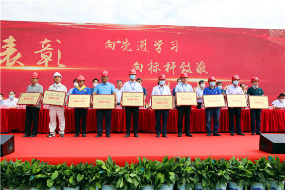 河北省總工會勞動和經(jīng)濟工作部部長李樹鋒、副部長張書濤、河北省交通運輸廳巡視員齊彥鎖、公路處長趙靜波、工會主任菅新錄、廊坊市交通運輸局副局長王政權(quán)、保定市高指辦主任張磊、滄州市高指辦主任劉敬德、永清縣副縣長王春風(fēng)、河北省交通投資集團(tuán)黨委書記、董事長王國清、總經(jīng)理齊樹平、副總經(jīng)理趙文忠,各施工監(jiān)理法人代表、中鐵一局副總經(jīng)理孔凡強、中鐵一局天津公司黨委書記、執(zhí)行董事陳高潮、副總經(jīng)理兼京德高速ZT7合同項目經(jīng)理王剛等單位相關(guān)負(fù)責(zé)人參加了表彰大會。