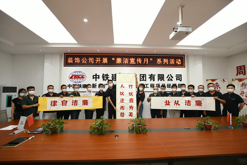 中鐵建設(shè)集團(tuán)北京中鐵裝飾工程有限公司華南區(qū)域黨支部按照“反腐倡廉宣傳教育月”活動(dòng)要求,于5月初,開(kāi)展了題為“知敬畏守底線 嚴(yán)監(jiān)管強(qiáng)執(zhí)行”的系列活動(dòng),通過(guò)微視頻拍攝、剪窗花、唱“廉”歌、廉潔共建4部分內(nèi)容展開(kāi)。