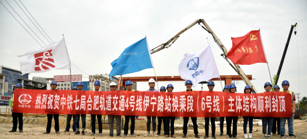 5月28日下午,隨著合肥軌道交通伊寧路站換乘段(6號線)主體結(jié)構(gòu)第7段頂板最后一方混凝土的澆筑完成,標(biāo)志著由中鐵七局承建的伊寧路站換乘段(6號線)主體結(jié)構(gòu)封頂,較業(yè)主預(yù)定時間提前三天完成,兌現(xiàn)了“大干一百天”的首個重大節(jié)點目標(biāo),掀起了大干的高潮。