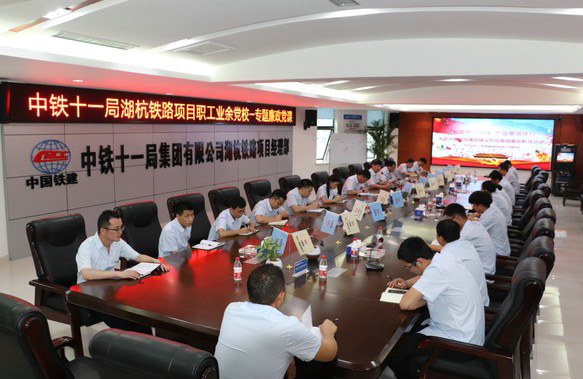 同日,下午4點(diǎn),中鐵十一局集團(tuán)湖杭鐵路項(xiàng)目邀請了德清縣黨校副校長姚文榮開展了一場“知敬畏守底線 嚴(yán)監(jiān)管強(qiáng)執(zhí)行”全力打造“湖杭精神 湖杭速度 湖杭擔(dān)當(dāng)”的主題廉政黨課,為湖杭鐵路建設(shè)筑牢思想防線。
