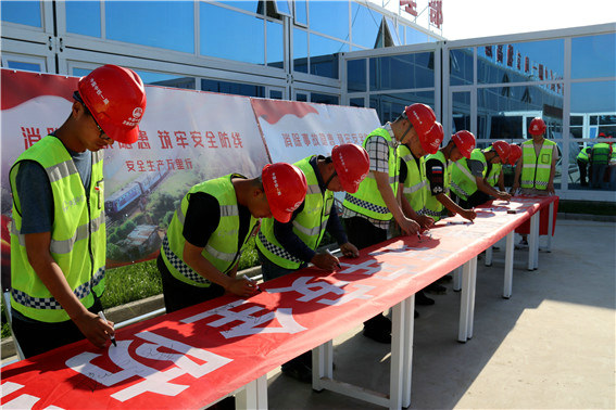 6月1日7:20分,中鐵一局京德高速ZT7標(biāo)項目開展2020年安全生產(chǎn)月啟動暨安全宣誓活動,拉開京德高速項目“消除事故隱患,筑牢安全防線”為主題的2020年安全生產(chǎn)月活動序幕。項目部領(lǐng)導(dǎo)班子成員、各部門管理人員、群安員、青安崗等70余人參加了此次啟動儀式并進(jìn)行簽名活動。