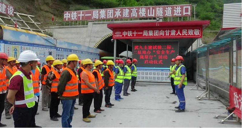 本站甘肅隴南訊:2020年6月是全國(guó)第19個(gè)“安全生產(chǎn)月”。6月1日,中鐵十一局四公司武九高速公路2標(biāo)項(xiàng)目與駐地實(shí)驗(yàn)監(jiān)理2標(biāo)在項(xiàng)目部共同舉行了“安全生產(chǎn)月”和“安全生產(chǎn)隴原行”活動(dòng)啟動(dòng)儀式。武九2標(biāo)駐地辦、項(xiàng)目部全體員工以及工友代表約80余人參加了本次活動(dòng)。