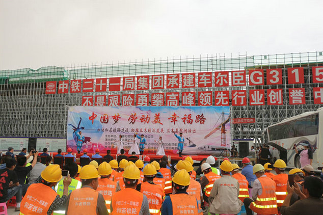 為弘揚以企業(yè)為家的文化理念,凝聚職工向心力,調(diào)動拓展員工的工作激情和斗志,確保和若鐵路項目各項節(jié)點目標(biāo)任務(wù)順利完成,近日,中鐵二十一局一公司和若鐵路S5標(biāo)項目經(jīng)理部與新疆和若鐵路有限公司聯(lián)合且末縣文工團(tuán)在和若鐵路S5標(biāo)一工區(qū)開展了以“中國夢•勞動美•幸福路”為主題的慰問演出活動。