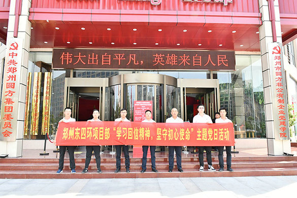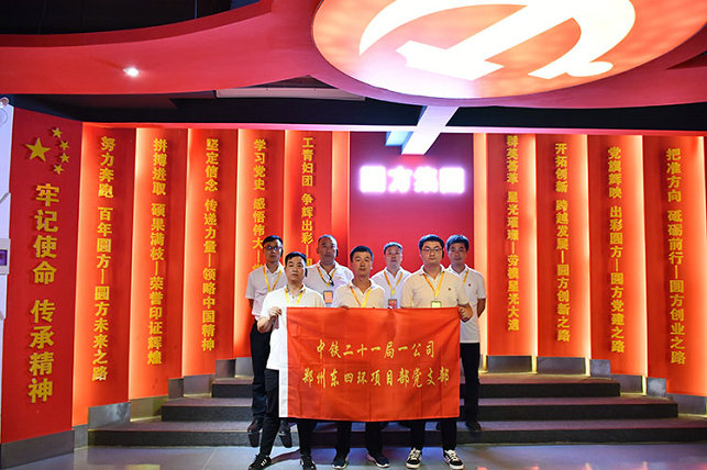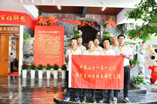 5月26日 ,中鐵二十一局一公司鄭州東四環(huán)項(xiàng)目黨支部在確保6.30主線橋通車會戰(zhàn)攻堅(jiān)的關(guān)鍵時(shí)刻,組織支部全體黨員、入黨積極分子等15人,走進(jìn)鄭州圓方集團(tuán)非公黨建學(xué)院參觀交流,零距離學(xué)習(xí)體會習(xí)總書記給予勞動者們的關(guān)懷和鼓勵,鼓舞干勁、組織實(shí)施勞動競賽,全面掀起施工大干熱潮。