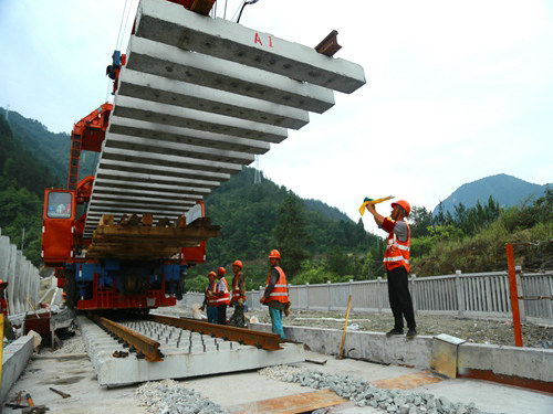 據(jù)中鐵一局鋪架項目部負責(zé)人陳??〗榻B,涪陵至中嘴段全長62.96公里,其中含橋梁29座,需架設(shè)T梁259.5孔。該施工管段山高路遠,峽谷幽深,地質(zhì)條件復(fù)雜、施工環(huán)境艱苦,加之鄰近既有線施工,安全風(fēng)險巨大、施工管理困難。