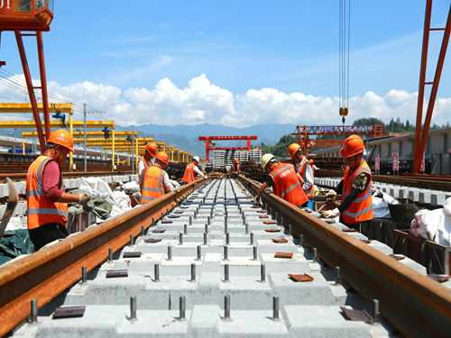 (李艷春 譚帥 高明)6月9日9時09分,成都局集團中嘴車站重端新建的路基上喝彩陣陣,鞭炮齊鳴,隨著工人們將最后一幅夾板有序地連接在兩節(jié)鋼軌的接頭處,標志著渝懷鐵路涪秀二線涪陵至中嘴段軌道與橋梁工程全部實現(xiàn)貫通,承諾目標圓滿兌現(xiàn),向8.10第一階段通車目標又邁出了最重要的一步。