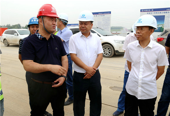 中國鐵路工程建設網(wǎng)訊(通訊員:范通帥)6月9日,河北交通投資集團公司黨委書記、董事長王國清一行到中鐵一局京德高速ZT7標督導調(diào)研項目建設情況。京德籌建處處長王志斌、副處長邱文利、許忠印、籌建處相關部門負責人、中鐵一局天津公司總經(jīng)理夏小剛、副總經(jīng)理、京德高速ZT7標項目經(jīng)理王剛、項目其他領導班子成員陪同調(diào)研。