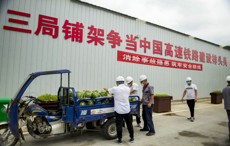 本報(bào)黃岡訊 東風(fēng)消停,大地如蒸。為了緊緊圍繞集團(tuán)公司勞動(dòng)競(jìng)賽和“大干一百天”活動(dòng)深入,提振項(xiàng)目參建員工士氣,推動(dòng)更好更快地實(shí)現(xiàn)項(xiàng)目工程建設(shè),中鐵三局線橋公司黃黃項(xiàng)目工會(huì)組織積極跟進(jìn)配合活動(dòng)開展,炎炎夏日“送清涼”,為百余名職民工送上大西瓜并就防暑降溫知識(shí)進(jìn)行宣傳教育,讓參建員工感受來自工會(huì)組織的融融情意。