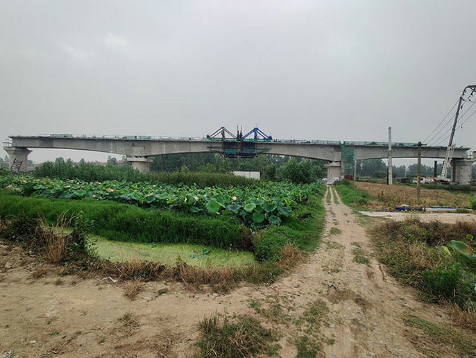新港江北鐵路貨運專線陽大公路特大橋跨規(guī)劃臨湖大道連續(xù)梁順利合龍意味著江北項目部掛籃法施工全面結(jié)束,這大大加快了江北鐵路的順利貫通。
