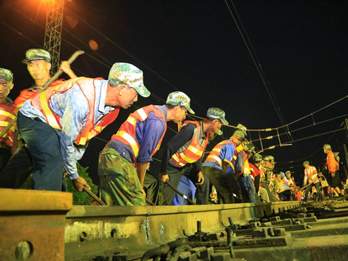 齊力進行鋼軌撥移作業(yè)
