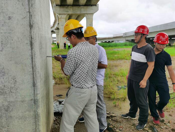 此次交驗(yàn)珠海市質(zhì)監(jiān)站牽頭,業(yè)主、監(jiān)理、檢測(cè)中心等主體單位配合參加,驗(yàn)收組檢測(cè)人員依據(jù)規(guī)范要求,對(duì)橋梁下部結(jié)構(gòu)回彈強(qiáng)度、保護(hù)層、結(jié)構(gòu)尺寸、柱間距等檢測(cè)指標(biāo)進(jìn)行了現(xiàn)場(chǎng)測(cè)定,經(jīng)過(guò)全面復(fù)核及數(shù)據(jù)驗(yàn)證,各方一致認(rèn)為主要檢測(cè)指標(biāo)均滿足設(shè)計(jì)和質(zhì)量評(píng)定標(biāo)準(zhǔn)的要求,驗(yàn)收通過(guò)。自3月復(fù)工以來(lái),項(xiàng)目部克服了疫期人員到位不齊、雨季施工效率低等不利因素,從資源配置、現(xiàn)場(chǎng)策劃、施工組織、安全質(zhì)量等方面入手,嚴(yán)格施工工藝標(biāo)準(zhǔn)化,同時(shí)嚴(yán)格按照規(guī)范要求及交驗(yàn)程序,安排專人擬定驗(yàn)收方案、梳理各驗(yàn)收小組成員名單,強(qiáng)力推動(dòng)工作開展,確保不帶問題移交。