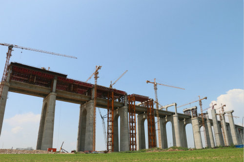 面對76米高空支架現(xiàn)澆復(fù)雜的工況,在沒有成功經(jīng)驗(yàn)借鑒的情況下,中國鐵建大橋局西北公司蒙華項(xiàng)目團(tuán)隊(duì)穩(wěn)扎穩(wěn)打,積極總結(jié)了公路梁首節(jié)段順利澆筑的成功經(jīng)驗(yàn)。在加強(qiáng)施工安全質(zhì)量及技術(shù)創(chuàng)新管理的同時(shí),向圓滿完成北引橋剩余施工任務(wù)發(fā)起最后沖刺,向成為超高墩梁部現(xiàn)澆施工高水平的技術(shù)團(tuán)隊(duì)砥礪前行。