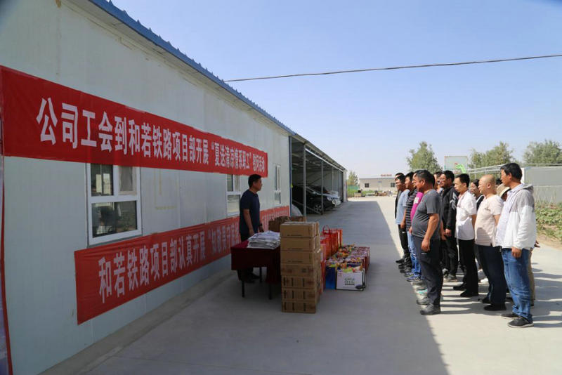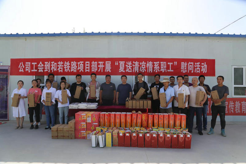 6月15日,中鐵二十一局四公司黨委副書記、紀(jì)委書記杜長松代表公司工會(huì)到和若鐵路項(xiàng)目部開展“夏送清涼·情系職工”慰問活動(dòng),給奮戰(zhàn)在一線的廣大職工送去公司的關(guān)懷。