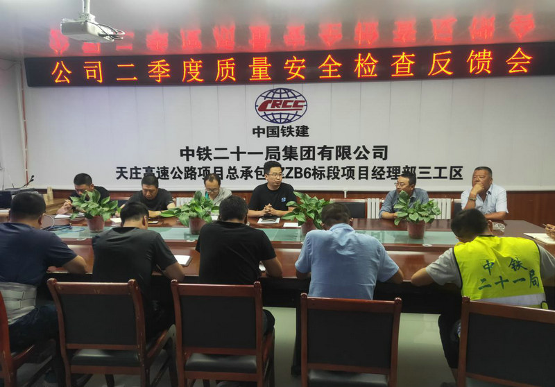 6月19日,由中鐵二十一局四公司安全質(zhì)量部、工程管理部組成的檢查組到天莊高速公路項(xiàng)目施工一線檢查指導(dǎo)工作,項(xiàng)目領(lǐng)導(dǎo)班子陪同檢查。