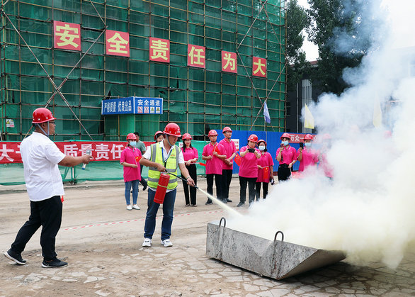 隨后,大家一起來到車軸山中學(xué)改造提升工程項目施工現(xiàn)場進(jìn)行參觀。改造項目安監(jiān)部部長給大家詳細(xì)講解了滅火器的使用方法。通過講解和演示,提升了雙方的安全生產(chǎn)意識和應(yīng)急避險能力。