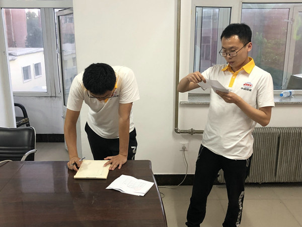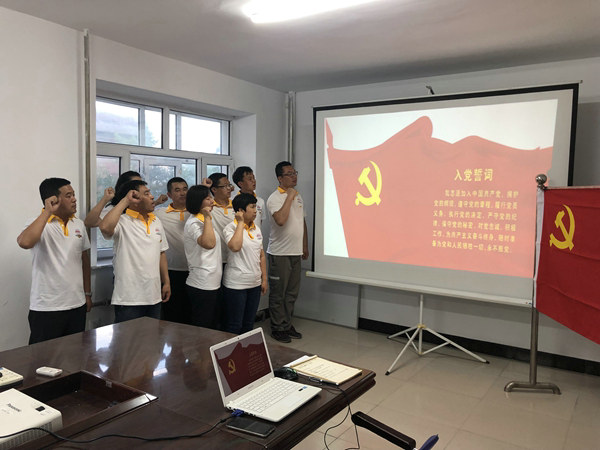 黨課結束后,全體黨員對兩名2019年7月開會通過的預備黨員李楠楠、王亮進行了轉為正式黨員的投票活動,項目部參會的全部黨員全票通過,隨后兩名轉正黨員表達了自己成為正式黨員前后的心路變化及自我評價,培養(yǎng)人也對兩人作出了極其客觀的評價,讓兩名轉正黨員收益良多。齊富項目部近一年來黨員流動較大,在黨支部歡迎新黨員同志的同時,也重新對黨支部委員進行了選舉,通過投票確定了黨小組副書記、組織委員、宣傳委員、紀委監(jiān)察員職務。在熱烈的選舉結束后,全體黨員在項目黨支部負責人孟曉東的帶領下,面對莊嚴的黨旗,舉起右拳,重溫入黨誓詞:我志愿加入中國共產黨……