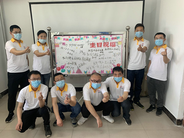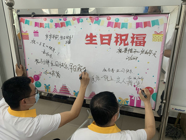 齊富項目部孟曉東第一個在生日祝福板上寫下生日祝福,并把生日蛋糕券送到過生日的職工手上。并對大家說:“企業(yè)發(fā)展離不開職工的辛勤工作,而企業(yè)發(fā)展的成果也是廣大職工共同努力的結果,公司始終把職工對美好生活的向往放在心上,不斷改善工程單位職工生活和待遇。而像這種生日祝福活動,要一直搞下去。”
